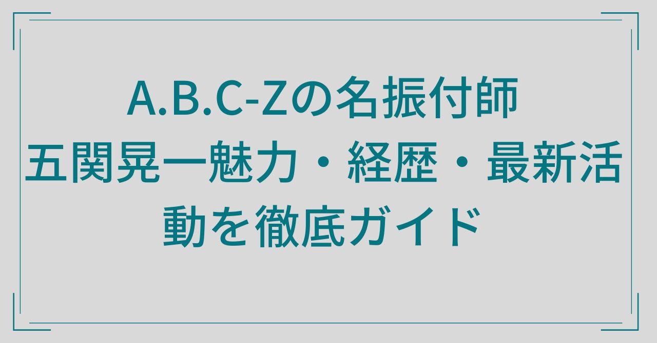今回は、A.B.C-Zの五関晃一さんについて紹介しました。